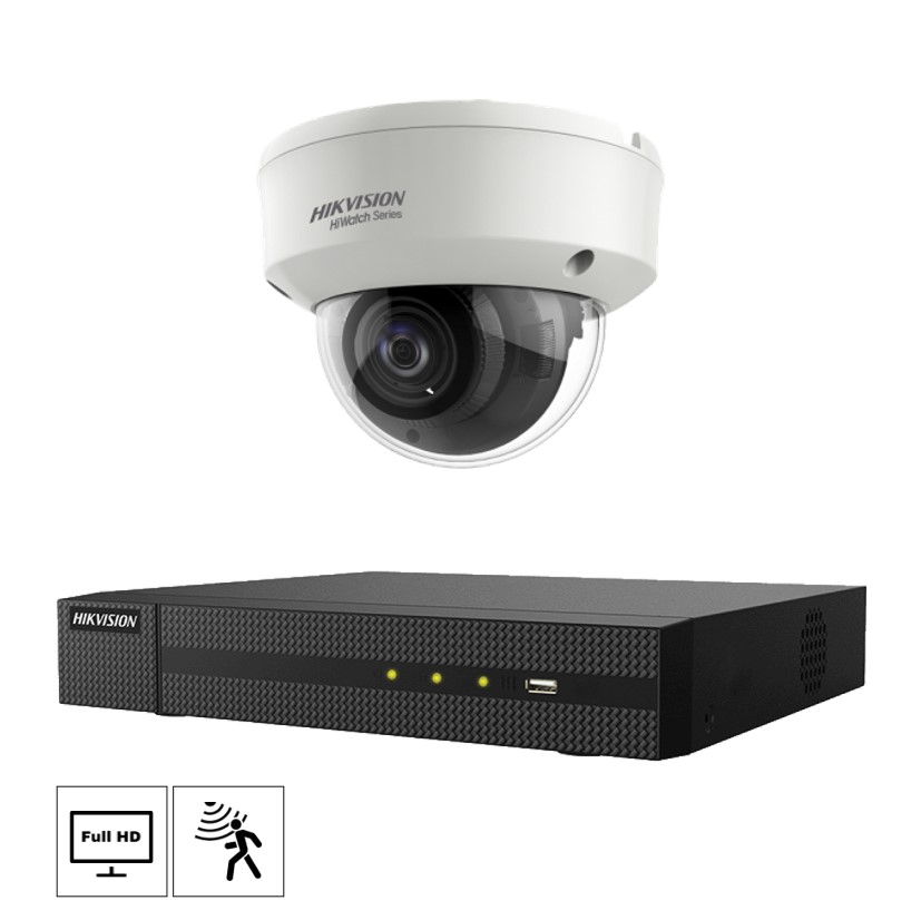 Analogt overvåkningssystem med 2MP Full HD dome kameraer med ZOOM, bevegelsesdeteksjon, & infrarødt nattlys. For bruk med koaksialkabler. Ideelt for oppgradering av gammelt system uten å bytte kabler. Kameraene kan styres fra opptaker og mobil. Systemet inkluderer en Hikvision videoopptaker med harddisk.