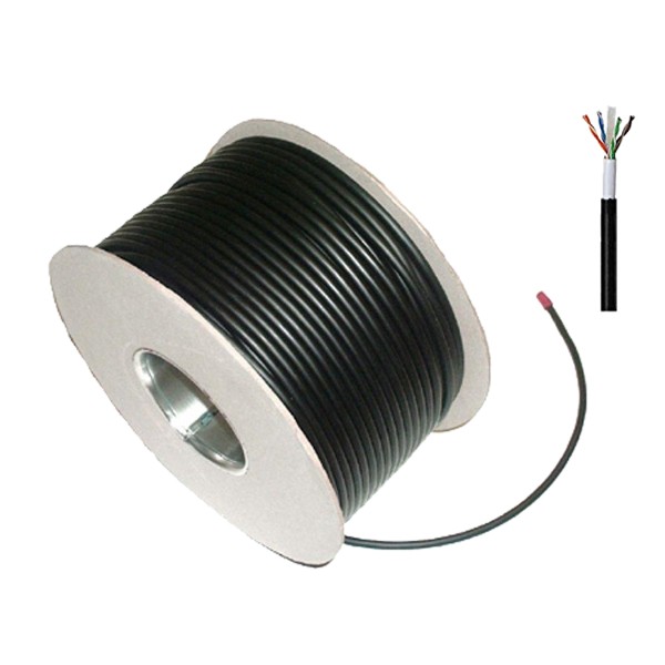 Nettverkskabel for IP-kameraer. For utendørs og innendørs bruk. Sort. 100 meter. Uten plugger.